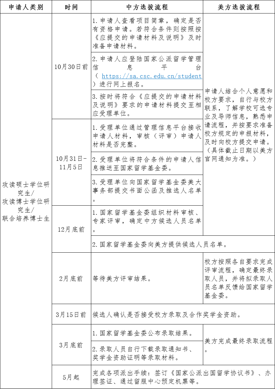2024年部分与美国合作奖学金项目申请与选派工作流程