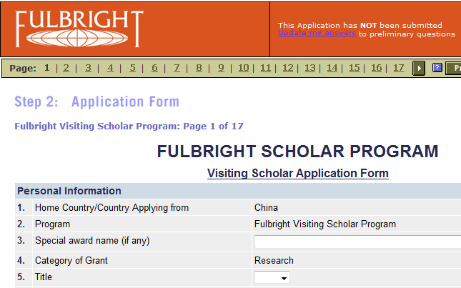 2018-2019学年度中美富布赖特研究学者项目网上申请表填写指南(美方要求)