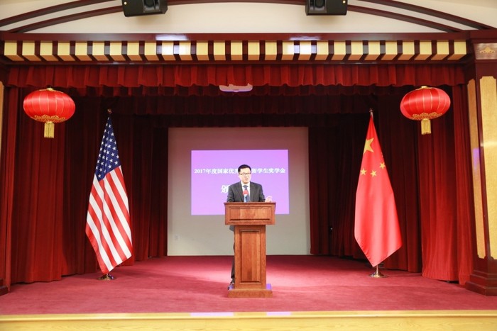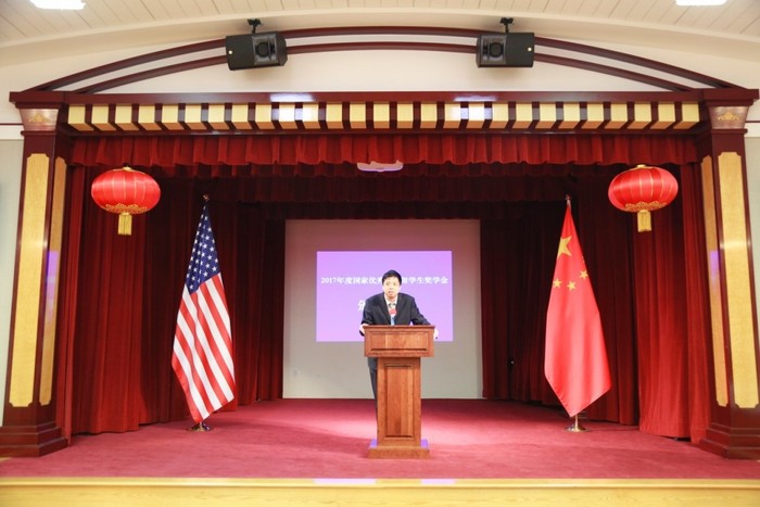 驻旧金山总领事罗林泉为2017年度国家优秀自费留学生奖学金获奖学生颁奖