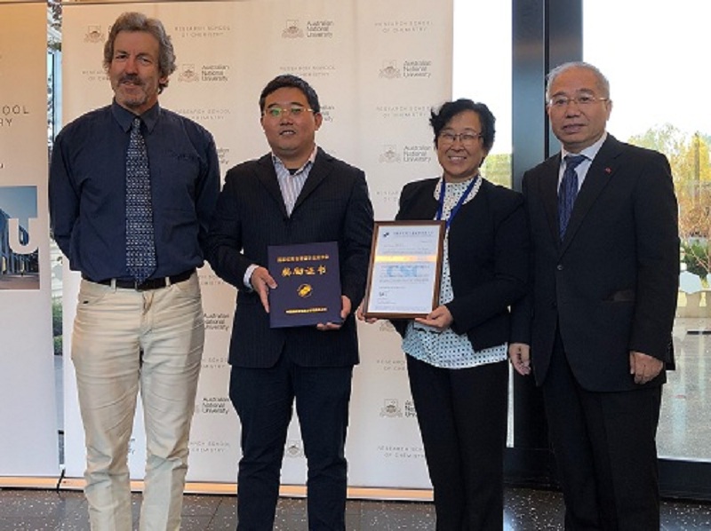 2018年5月18日上午,驻澳大利亚使馆教育处徐孝公参赴澳大利亚国立大学为2017年度国家优秀自费生奖学金获得者、澳国立大学化学院孙庆波博士颁奖。澳国立大学化学院院长John Carver教授出席颁奖仪式。