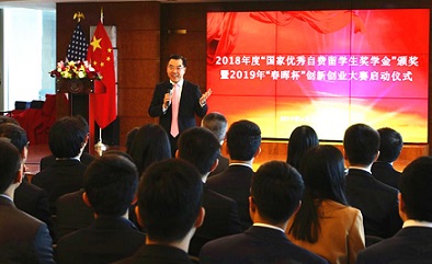驻纽约总领馆举办2018年度国家优秀自费留学生奖学金颁奖