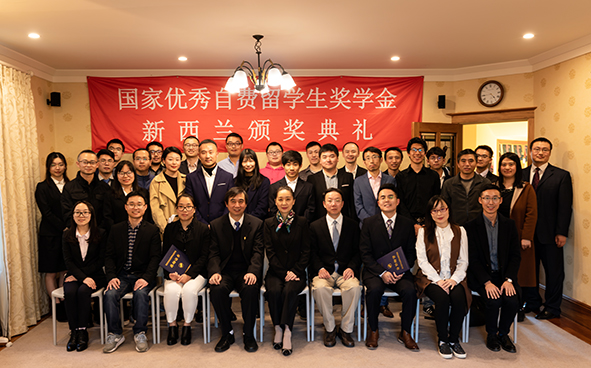 5月3日,驻新西兰使馆举行国家优秀自费留学生奖学金颁奖仪式。吴玺大使向荣获2018年度国家优秀自费留学生奖学金的学生颁发荣誉证书和奖学金。新西兰部分高校代表、导师代表和部分中国留学生、学者出席,驻新使馆教科文处董志学参赞主持颁奖仪式。
