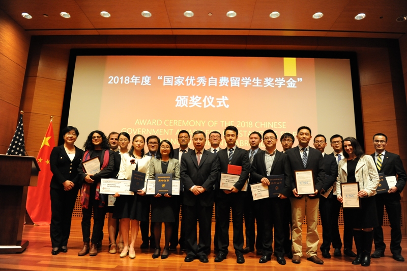 驻美国使馆举行2018年度“国家优秀自费留学生奖学金”颁奖仪式
