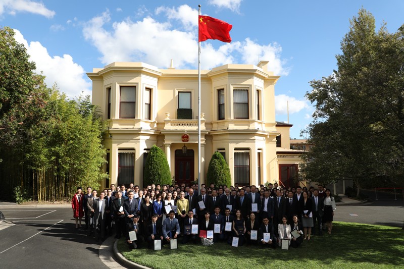 5月3日,中国驻墨尔本总领馆举办“喜迎新时代,争做新青年”演讲会暨2018年度“国家优秀自费留学生奖学金”颁奖仪式。领区各高校代表、院士、评审专家、领区学联主席及留学生代表、获奖人员及其导师和亲友、墨尔本领区入围选手代表、澳洲中国博士沙龙代表、澳洲商学院代表、国内各高校校友会代表等100余人出席了此次活动。