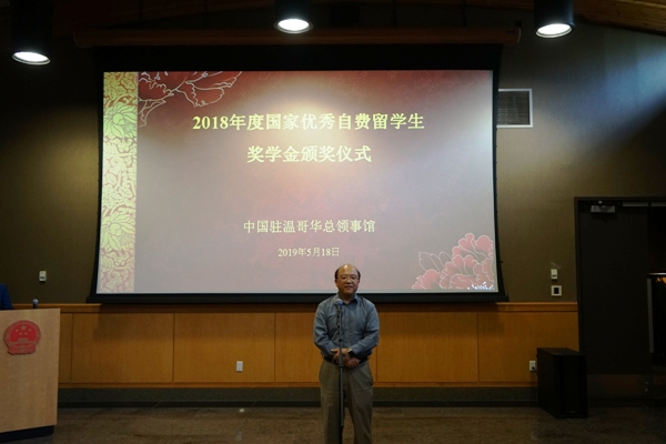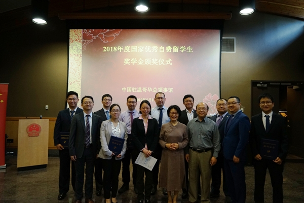 “国家优秀自费留学生奖学金”是中国政府于2003年设立,旨在奖励优秀自费留学人员在学业上取得优异成绩,鼓励他们回国工作或以多种形式为国服务,每年评选一次,至今已有6415名留学生获奖。2018年度全球共有500名留学生获奖,驻温哥华总领馆领区共有16人获奖。