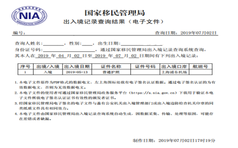 (仅限护照未盖出入境记录章的情况,三种方式查询的显示结果相同)