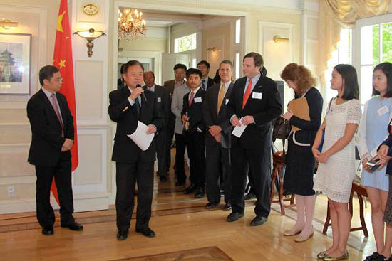 活动在悠扬的古筝与小提琴合奏乐曲声中拉开帷幕,李公使在讲话中首先向获奖的优秀留学生表示祝贺,他说,“国家优秀自费留学生奖学金”是对不畏艰难、勇攀高峰的自费留学人员的褒奖,彰显了国家对海外优秀人才的高度重视,传递了国家对海外广大学子的殷切期望。他特别表达了对美国高校领导、教授的诚挚感谢,并希望他们将来继续支持和关心留美中国学生。最后,他向广大留学生表达了美好的祝愿和诚挚期望,希望他们继续勤奋学习,常怀报国之志,在中国人民共同实现“中国梦”的伟大征程中实现个人抱负和人生价值。美国国务院代表、美国乔治华盛顿大学副校长、获奖学生代表、获奖学生导师代表、评审专家、美国教育专业机构代表分别发言。