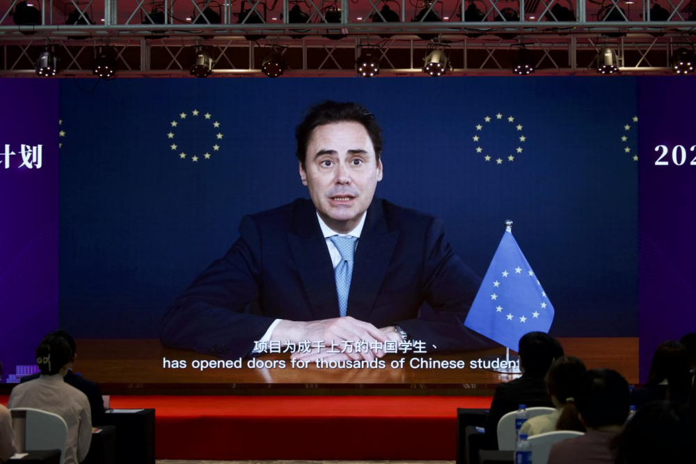 国家留学基金管理委员会副秘书长田露露作开幕致辞,欧盟驻华大使Jorge Toledo视频致辞,南京大学校长助理丁爱军出席会议并讲话。