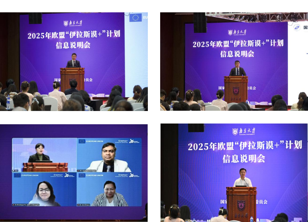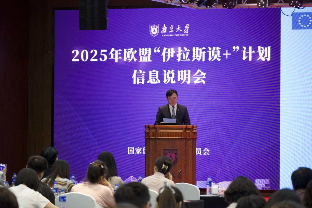 2025年4月18日下午,为庆祝中欧建交50周年,落实中欧高级别人文交流对话机制第六次会议精神,首届欧盟“伊拉斯谟+”计划信息说明会在南京大学举办。该信息说明会由国家留学基金管理委员会主办、南京大学承办,得到了教育部国际合作与交流司和欧盟驻华代表团、欧盟委员会教育科学文化总司的大力支持。